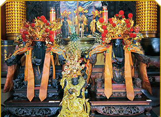 黑虎將軍是玄壇元帥趙公明的座騎,傳說因商末年,趙公明無法推辭聞太師央求助商伐周,遂帶門生陳九公、姚少司下山,在途中突遇兇猛之黑虎,收服為部將,是故中國民間之亦常見騎著猛虎手 持節鞭黑面怒目的玄壇元帥塑像。本宮的黑虎將軍獨立供奉於正殿之神龕下,除威猛善戰能驅 邪鎮煞十分靈感之外,也因是財神爺之座騎加上造型可愛十分討喜,信眾愛向虎爺求財的程度恐不亞於財神爺本尊,進香期常因香客爭相擠進神龕前的小通道膜拜虎爺而讓正殿擠得水泄不通!!!