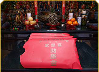 『五路財神』為天官中路武財神『金龍如意正一龍虎玄壇真君』-趙光明,天官東路武財神『招寶天尊』-蕭升,天官西路武財神『納珍天尊』-曹寶,天官南路武財神『招財使者』-陳九公,天官北路武財神『利巿仙官』-姚少司。『五路財神』掌管天下四方財庫,買賣求財;『五路財神』能宜利和合,但求公平公正。其為司財和與人致富的功德,深為世人商賈最崇信的神明。