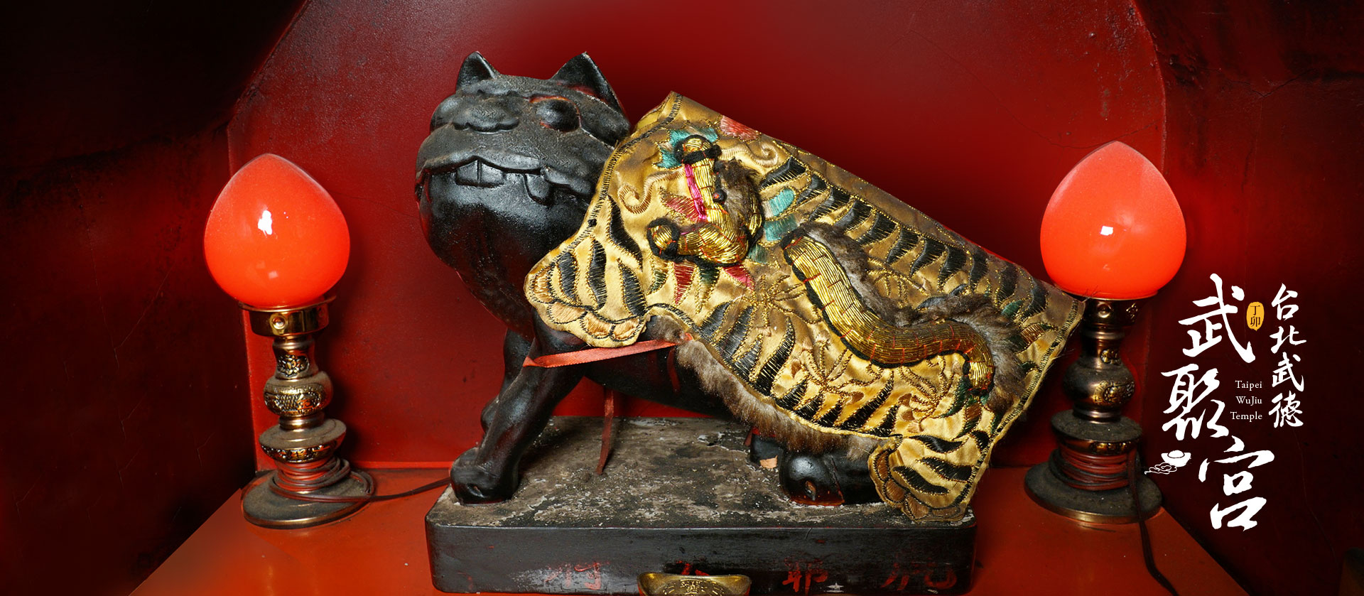 黑虎將軍是玄壇元帥趙公明的座騎,傳說因商末年,趙公明無法推辭聞太師央求助商伐周,遂帶門生陳九公、姚少司下山,在途中突遇兇猛之黑虎,收服為部將,是故中國民間之亦常見騎著猛虎手 持節鞭黑面怒目的玄壇元帥塑像。本宮的黑虎將軍獨立供奉於正殿之神龕下,除威猛善戰能驅 邪鎮煞十分靈感之外,也因是財神爺之座騎加上造型可愛十分討喜,信眾愛向虎爺求財的程度恐不亞於財神爺本尊,進香期常因香客爭相擠進神龕前的小通道膜拜虎爺而讓正殿擠得水泄不通!!!